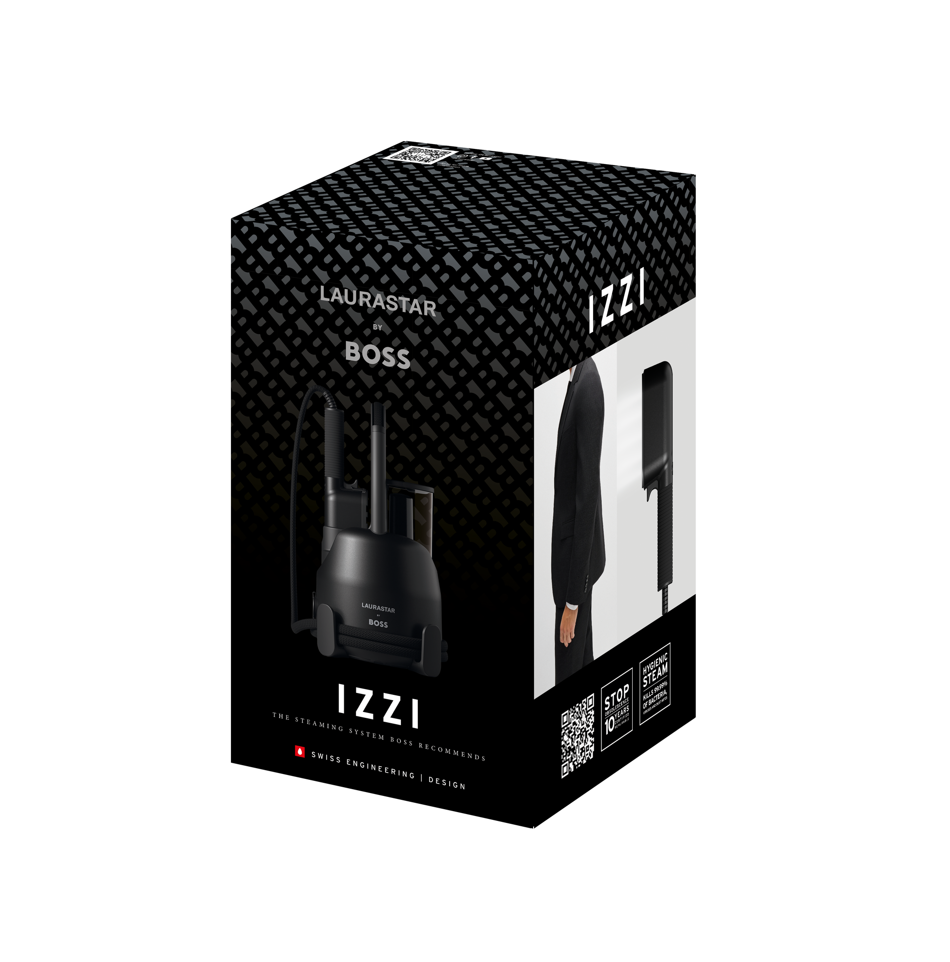 The “Laurastar by BOSS” IZZI sets a new standard in garment care by blending Swiss engineering and design with the iconic essence of BOSS. Designed to perfect every detail of your outfit and elevate your style, this sleek steamer with its black matte brushed finish and minimalist design ensures your clothes are smooth, refreshed, and plumped up on any occasion. Suitable for all fabrics, even the most delicate ones, it is an essential tool for your wardrobe.