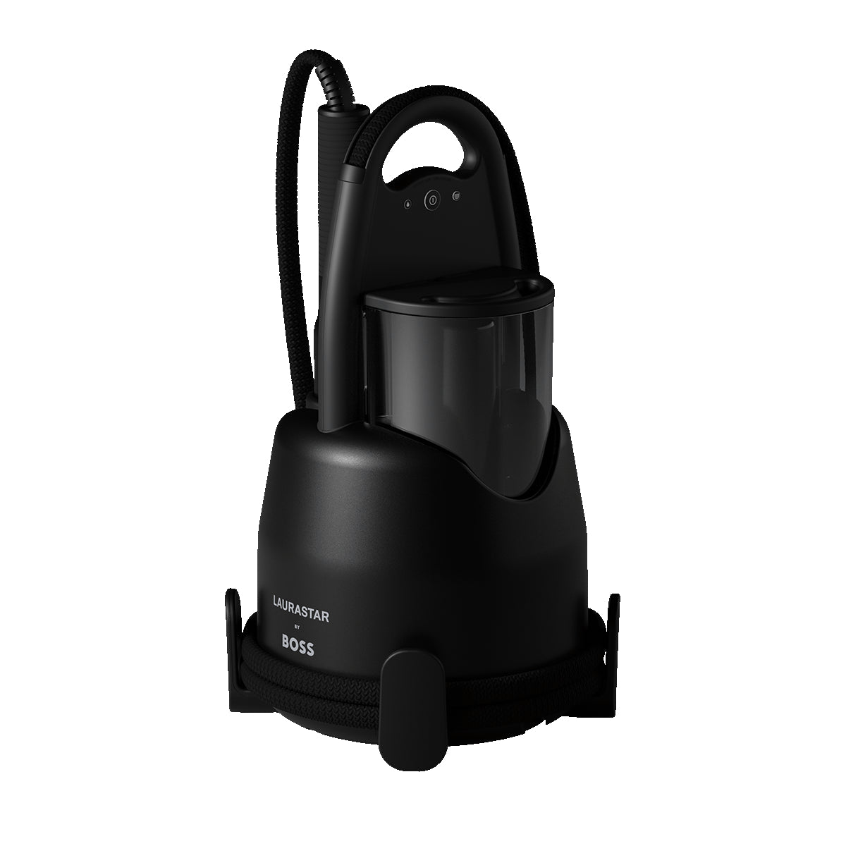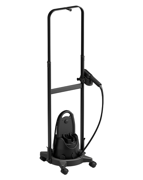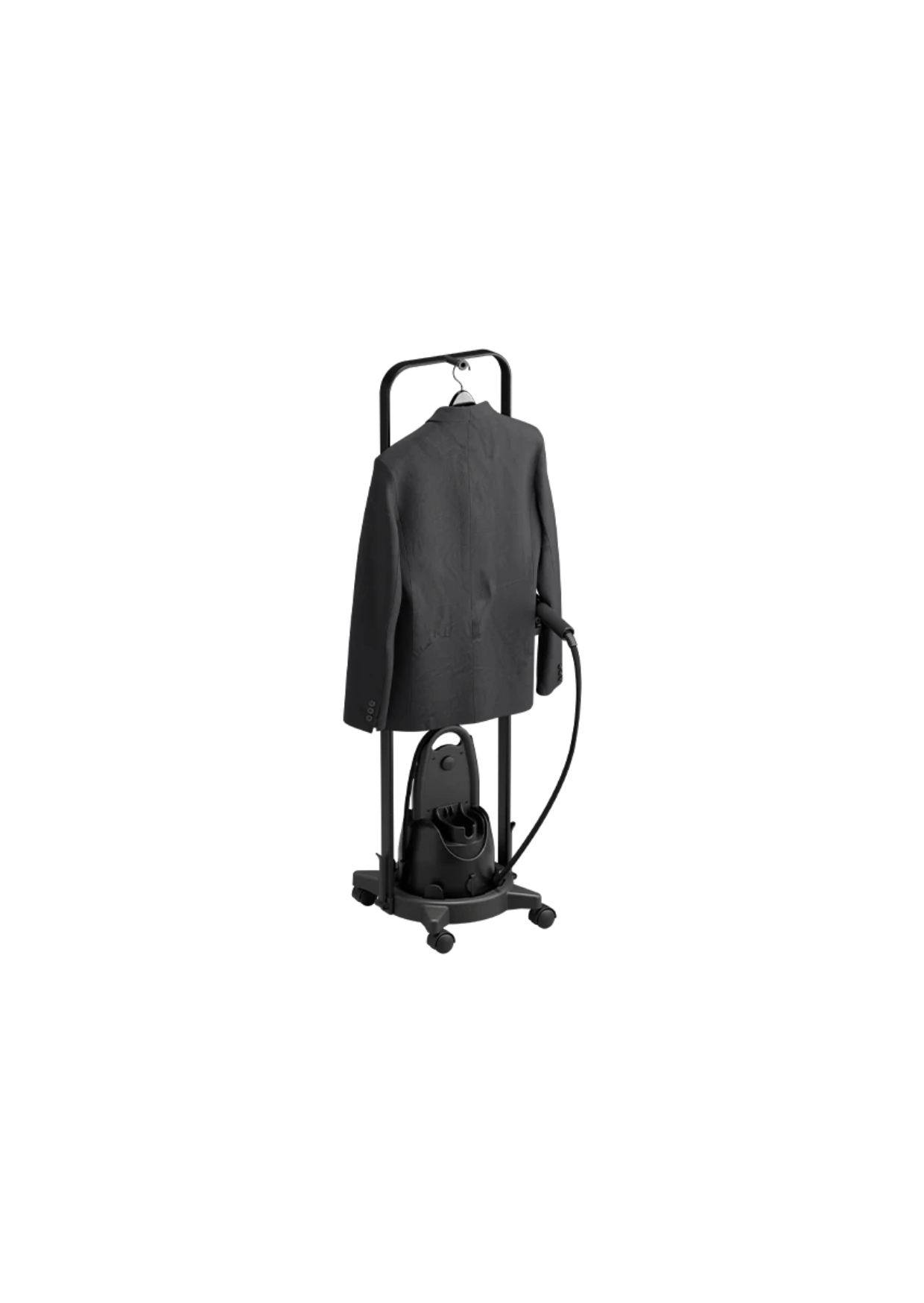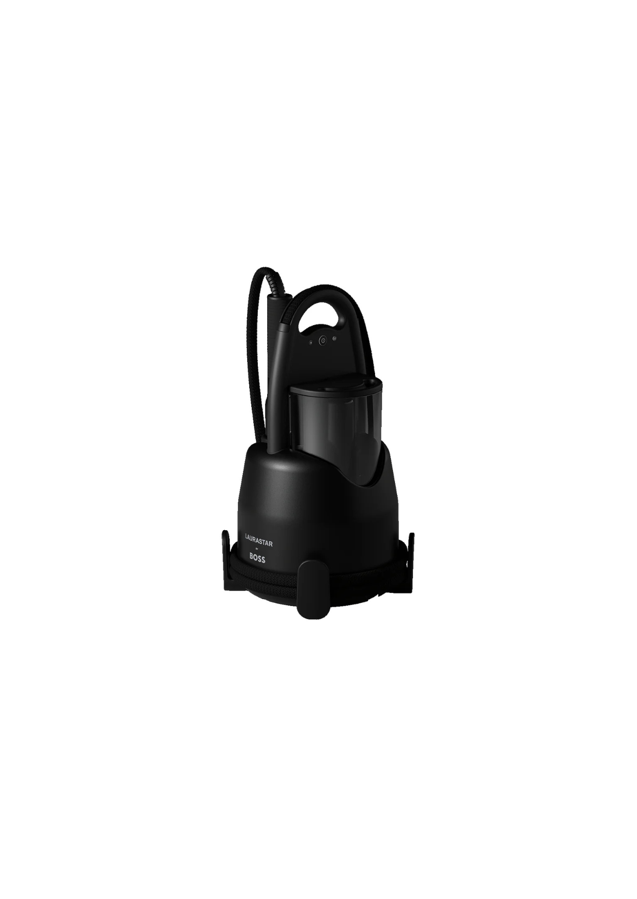 The “Laurastar by BOSS” IZZI Cart is the clever assistant for your “Laurastar by BOSS” IZZI. Featuring a convenient hook, it allows you to easily steam or refresh garments on a hanger, elevating your style with every use. With its sleek black matte brushed finish and smooth-rolling wheels, it effortlessly moves your IZZI steamer around the house, blending practicality with the distinctive BOSS aesthetic.